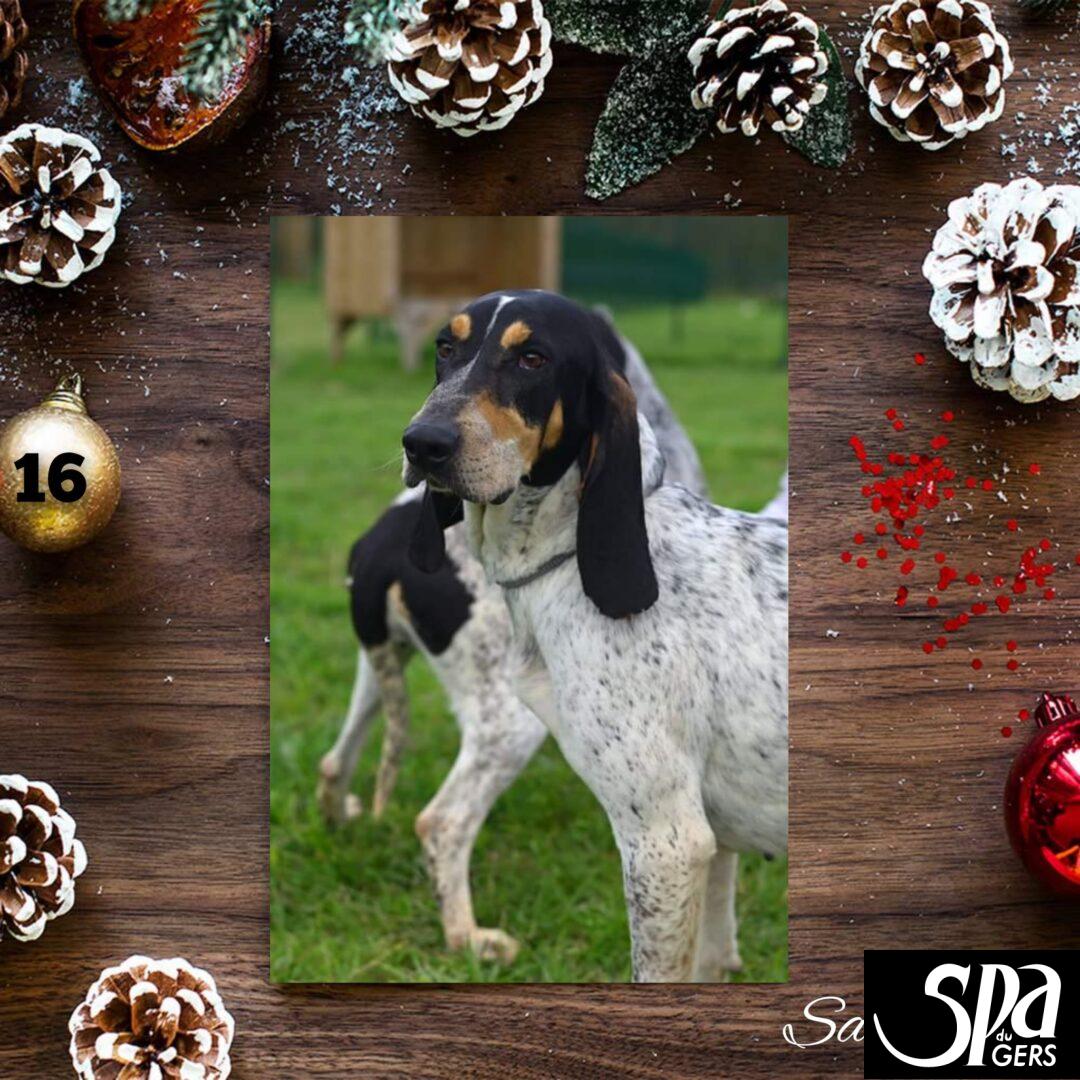 Cher pÚre Noël,Je suis la derniÚre étant donné que Catelyn a été adopté en septembre dernier, quel bonheur de la savoir dans un foyer. Je suis également une timide, je suis avec Snow dans le box, on se rassure en se disant aller c'est bientÎt notre tour ! On va vivre le second hiver au refuge vu que nous sommes arrivés en février, mais ça va aller ! On tiens bon ! Je sais trÚs bien que mon maßtre ne viendra plus, ça fait trop longtemps, mais j'aimerai tant donner mon affection à un autre. Je déborde d'amour, je fais pleins de bisous quand j'aime, je fais des petits sauts pour y arriver, j'adore me balader, courir et surtout passer du temps avec les bénévoles qui nous cajolent. Je sais que je suis un chien de chasse et en plus timide, mais je fais la promesse à ma future famille que je vais faire des efforts pour me sentir mieux dans mes pattes, s'il y a un copain ou une copine pour me rassurer ça serait vraiment merveilleux.