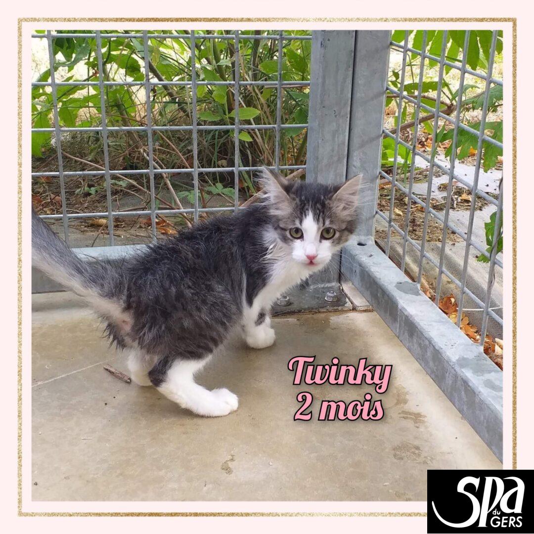 Twinky est une gentille minette, curieuse, aventureuse. Comme tout chatons elle aura tout à apprendre de la vie de famille, propreté, solitude, sociabilisation,… Ne sait pas Oui Arrivé au refuge en juillet 2022
