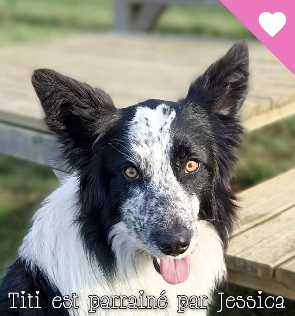 Titi est un border collie qui a besoin de faire confiance, une fois accordée, c’est un amour de chien, très proche de l’humain, il ne va jamais très loin, aimant les câlins, faire des léchouilles, il est très expressif, il nous fait la fête quand on viens le voir.