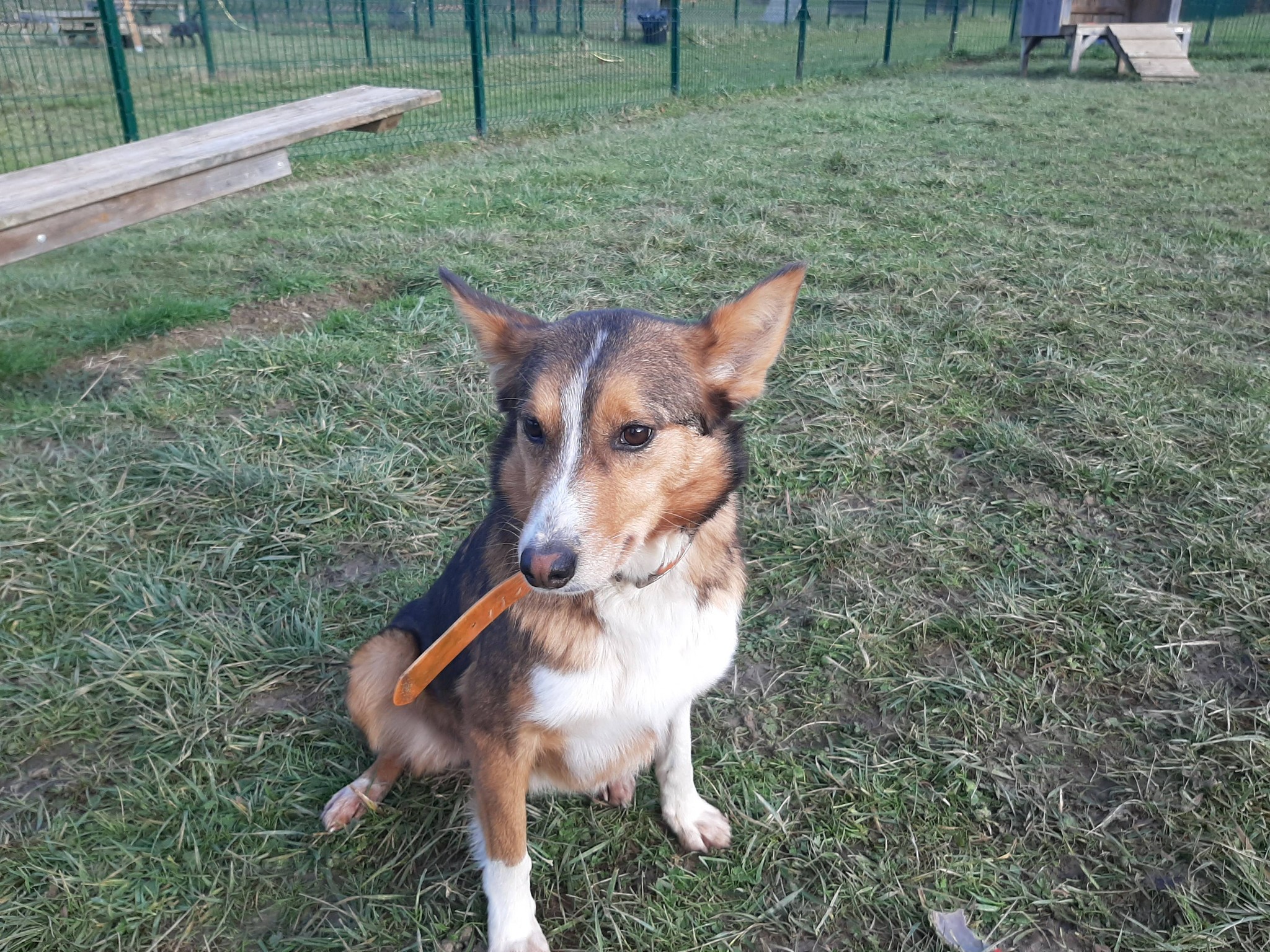 Jo est une croisée berger craintive au premier abord, avec du temps et de la douceur, elle ose s’approcher, elle se laisse caresser, de façon calme et tendre.