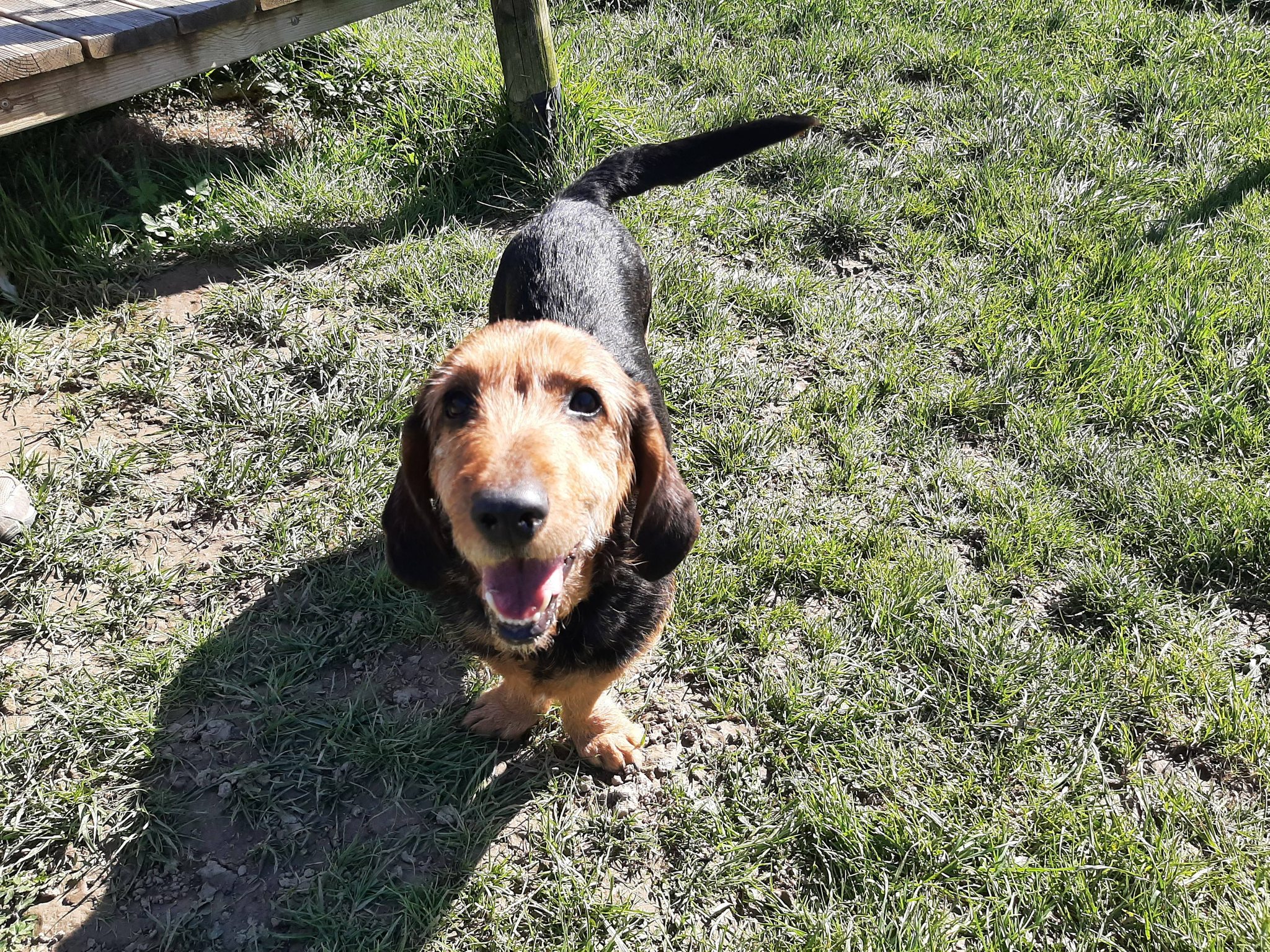 Sherlock est un croisĂ© basset sociable avec tout le monde, petits et grands, il adore les cĂąlins, il est proche de l’humain et les gourmandises, il les prend dĂ©licatement.