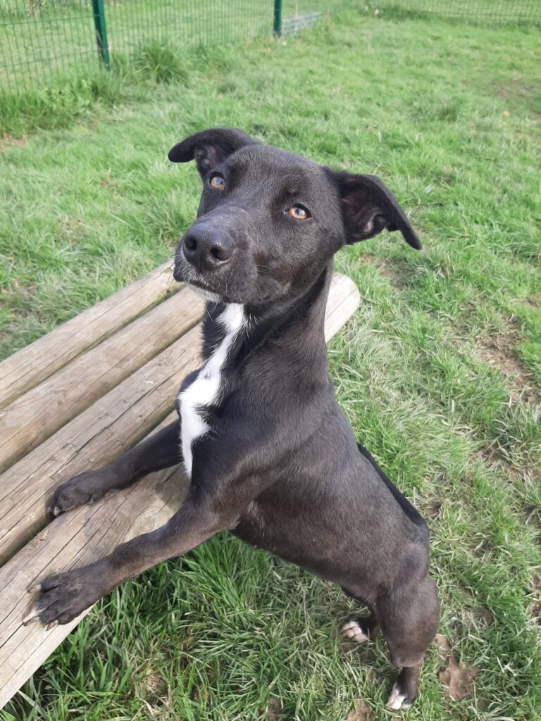 Praline est une chienne absolument adorable, très très proche de l’humain, elle vient à la recherche des câlins, posant délicatement ses pattes sur nous, faisant