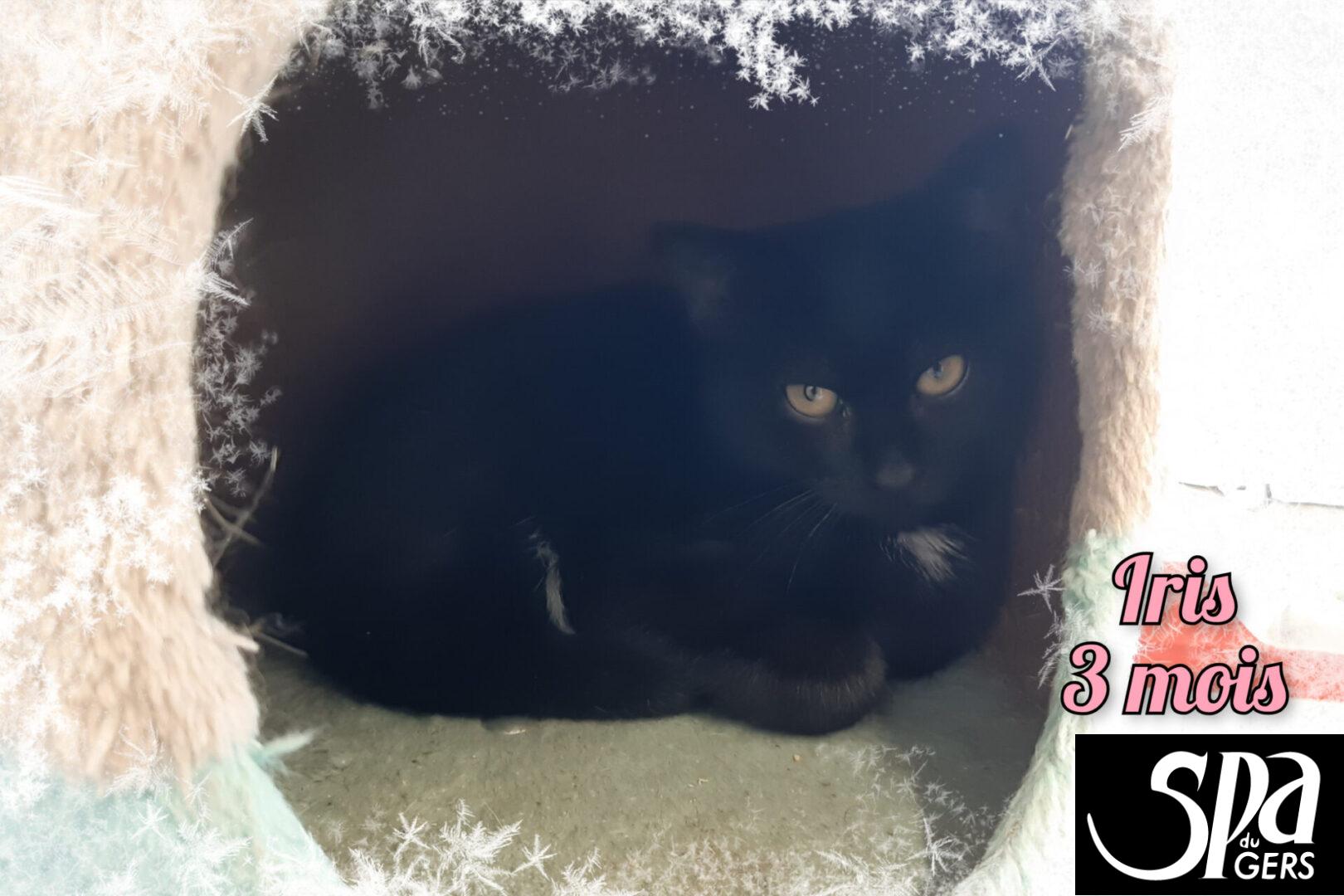 Iris vient d’arriver et se détend peu à peu, elle est encore sur la réserve, mais se laisse tout de même caresser. Comme tous chatons elle aura tout à apprendre Ne sait pas Oui Oui