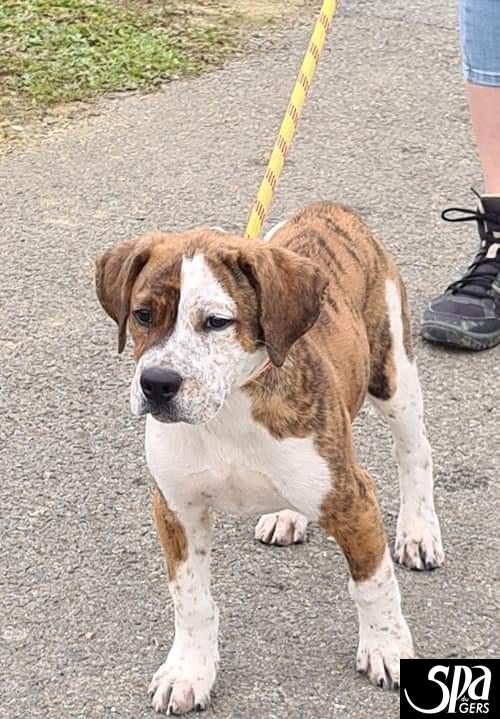 Shyla est une Américan Bully de 6 mois, elle pèse déjà 20 kg, elle est joueuse, câline, débordante d’énergie. Elle se laisse manipuler, porter, doucher et nettoyer ses oreilles sans rien dire. Comme tous chiots elles ont tout à apprendre propreté, sociabilisation, solitude, éducation Oui Ne sait pas Oui